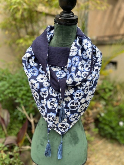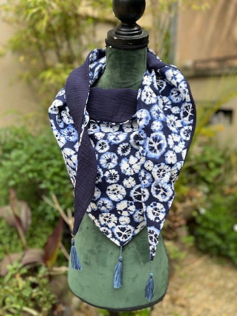 confectionné en tissu coton à motifs bleu blanc et une double gaze coton marine