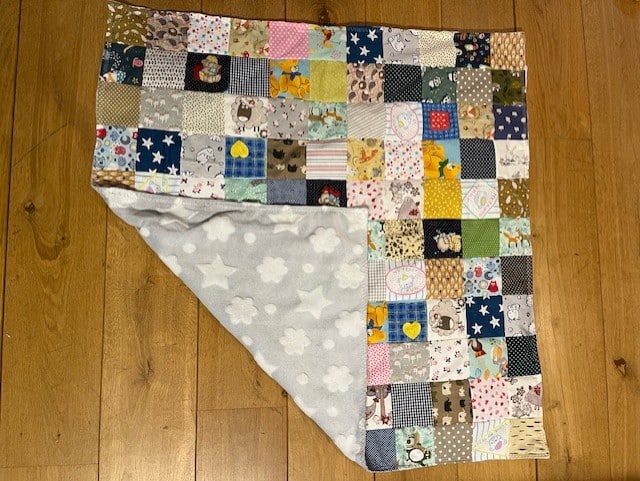 Cette couverture cousue avec amour apporte de la variété à l’œil de bébé par la diversité des tissus et leurs couleurs, développera son sens du toucher et sa motricité libre.