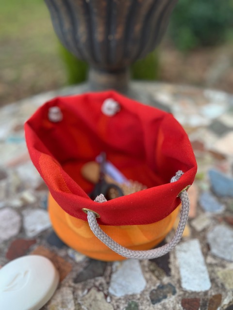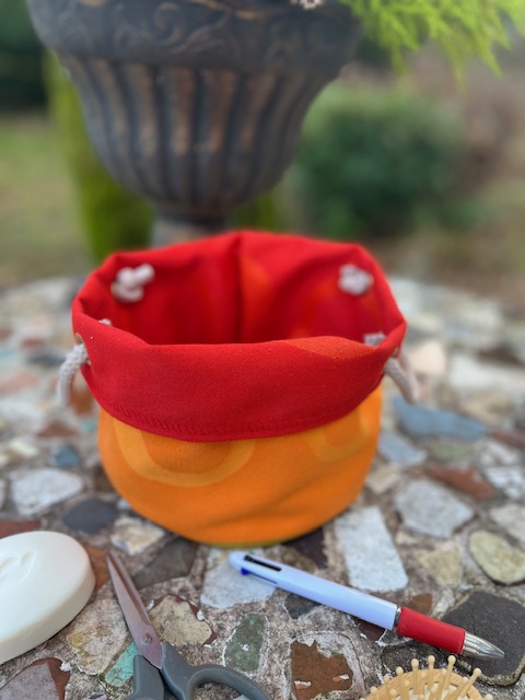 Panière ronde en tissu toile de store * dans des tons orange rouge