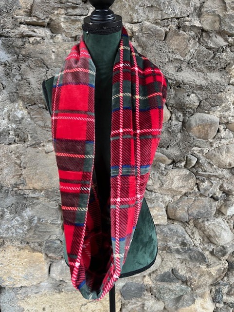 confectionné avec une polaire noire chaude et douce à motifs écossais rouge vert